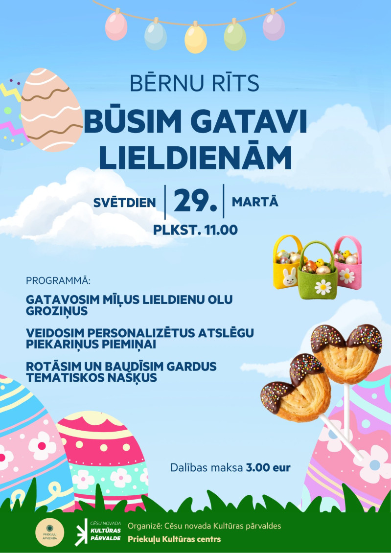 Aicinām mazos un lielos uz radošu un priecīgu kopā būšanu 29. martā plkst. 11.00 Priekuļu Kultūras namā.