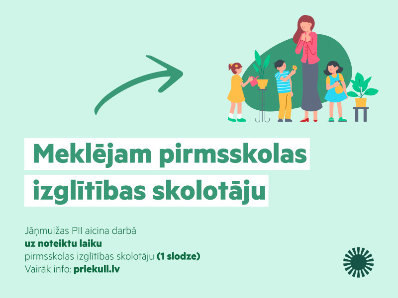 Jāņmuižas PII aicina darbā pirmsskolas izglītības skolotāju