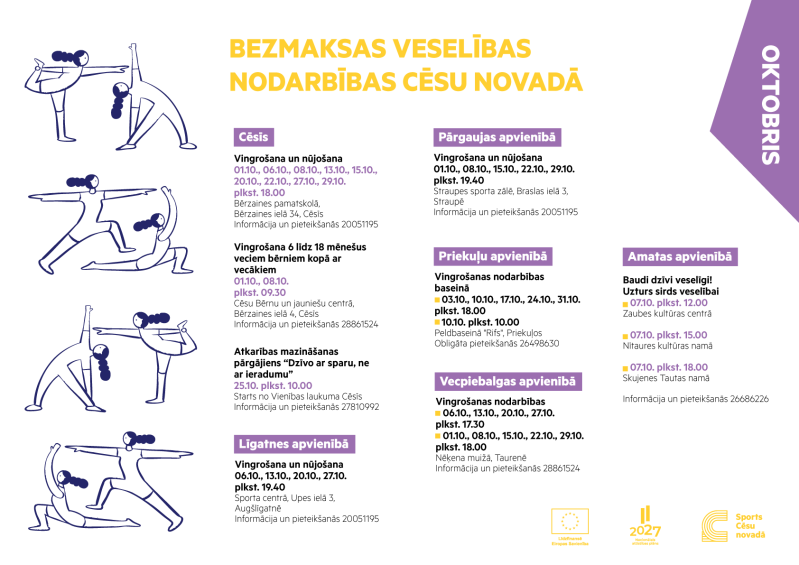 Bezmaksas nodarbības katru piektdienu - 3., 10., 17., 24. un 31. oktobrī - plkst. 18.00, kā arī 10. oktobrī plkst. 10.00 peldbaseinā “Rifs”, Priekuļos.