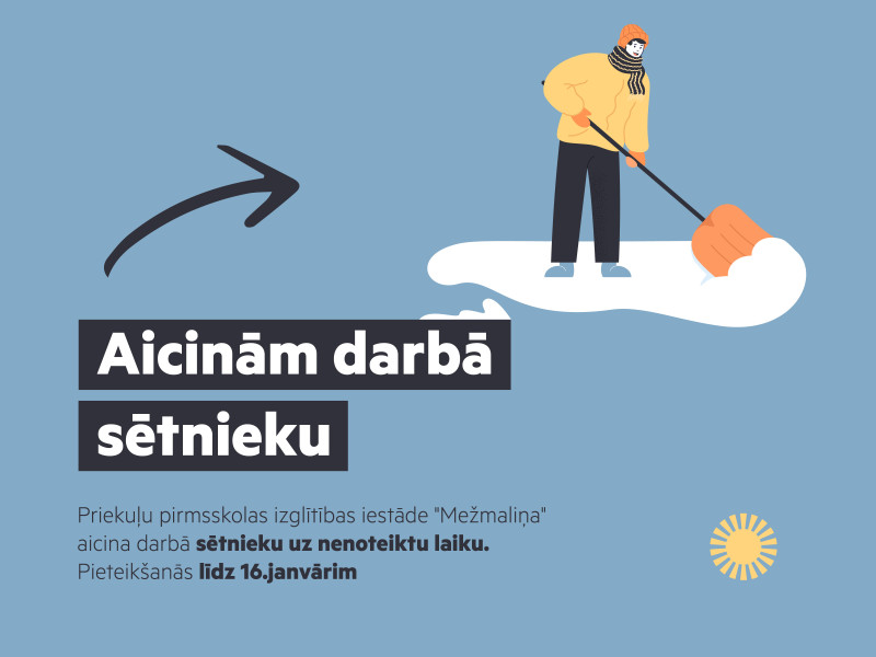Priekuļu pirmsskolas izglītības iestāde “Mežmaliņa” aicina darbā sētnieku,